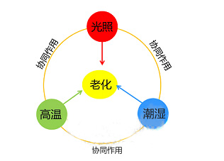 2)熱——當溫度升高時,光的破壞作用也將隨之增大,盡管溫度不影響主要的光致化學反應,但卻影響后續的化學反應,實驗室常通過升溫的方法來加速老化。