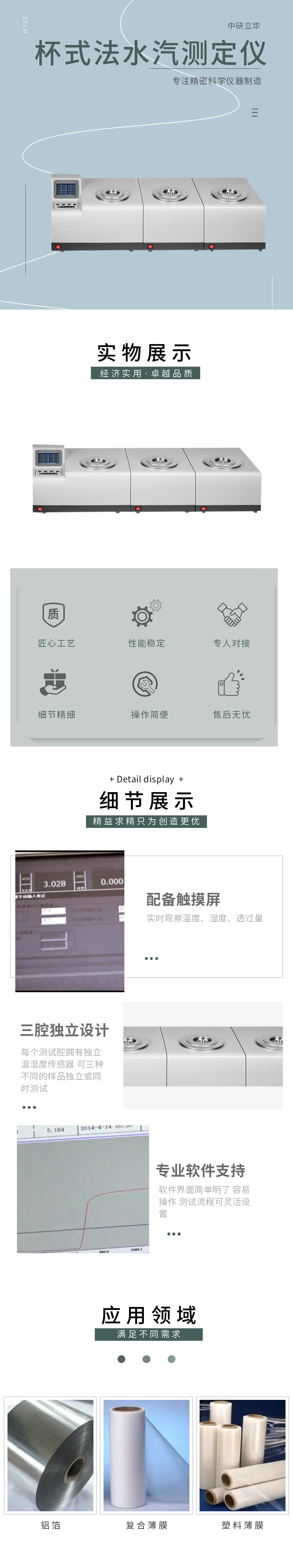 用途:測定薄膜或薄片材料的水汽透過率(量)用于塑料薄膜、復(fù)合薄膜、鋁箔、鍍鋁膜,各種片材、板材、橡膠、陶瓷,包裝容器。應(yīng)用于質(zhì)檢、藥檢、科研、包裝、薄膜、食品、藥品、電子等行業(yè)