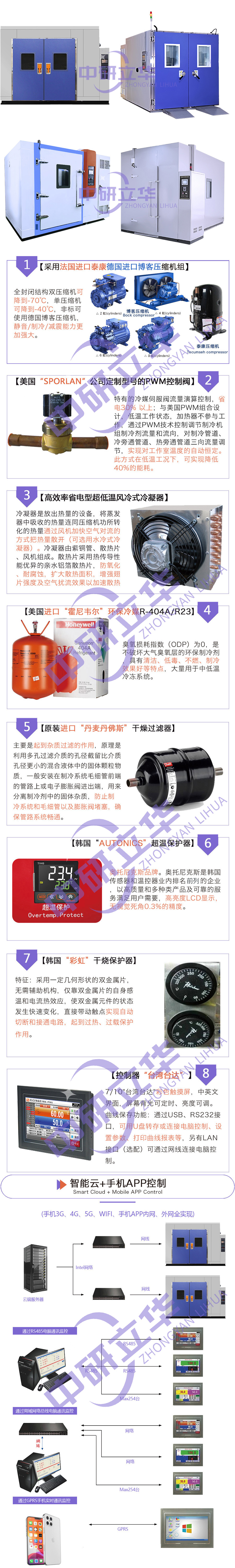 | 產品用途 | 步入式恒溫恒濕試驗箱是通過技術手段,以自然環境中較常遇見之溫濕度加以模擬,以數倍于自然環境之嚴苛條件加以組合,測試樣品性能的試驗設備。主要應用于國防工業、航天工業、自動化零組件汽車部件、電子電器件、塑膠、化工、制藥等相關行業,適合于測試產品量多、體積大的試驗。無論耐熱、耐寒測試,還是為產業界提供大型零件,半成品,成品之大型溫濕度測試環境空間都能勝任。 | |||||||