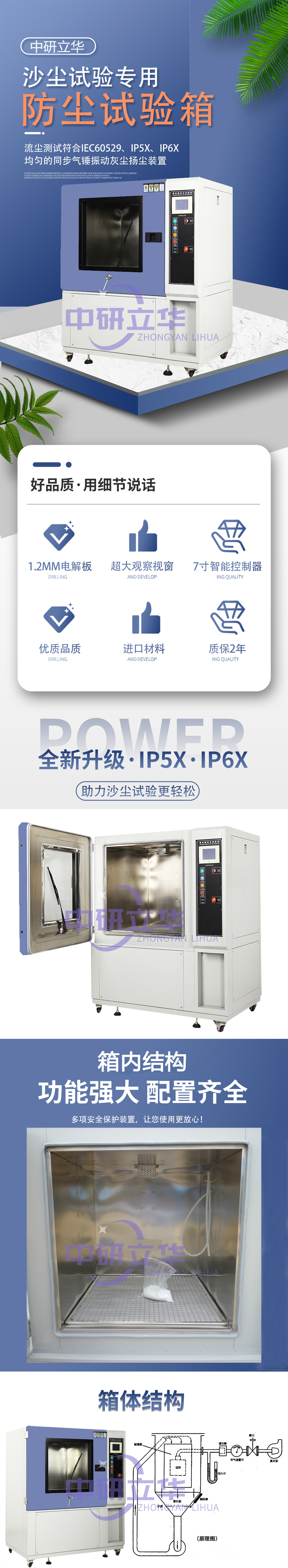 沙塵試驗(yàn)箱學(xué)名為“砂塵試驗(yàn)箱”,模擬自然界風(fēng)沙氣候?qū)Ξa(chǎn)品的破壞性,適用于檢測(cè)產(chǎn)品的外殼密封性能,主要用于外殼防護(hù)等級(jí)標(biāo)準(zhǔn)中規(guī)定的IP5X和IP6X兩個(gè)等級(jí)的試驗(yàn)。該設(shè)備適用于電工電子產(chǎn)品、汽車摩托車零部件、密封件在砂塵環(huán)境中防止砂塵進(jìn)入密封件和外殼的試驗(yàn)。以檢驗(yàn)電子電工產(chǎn)品、汽車、摩托車零部件、密封件在砂塵環(huán)境中的使用、貯存、運(yùn)輸?shù)男阅堋?/span>