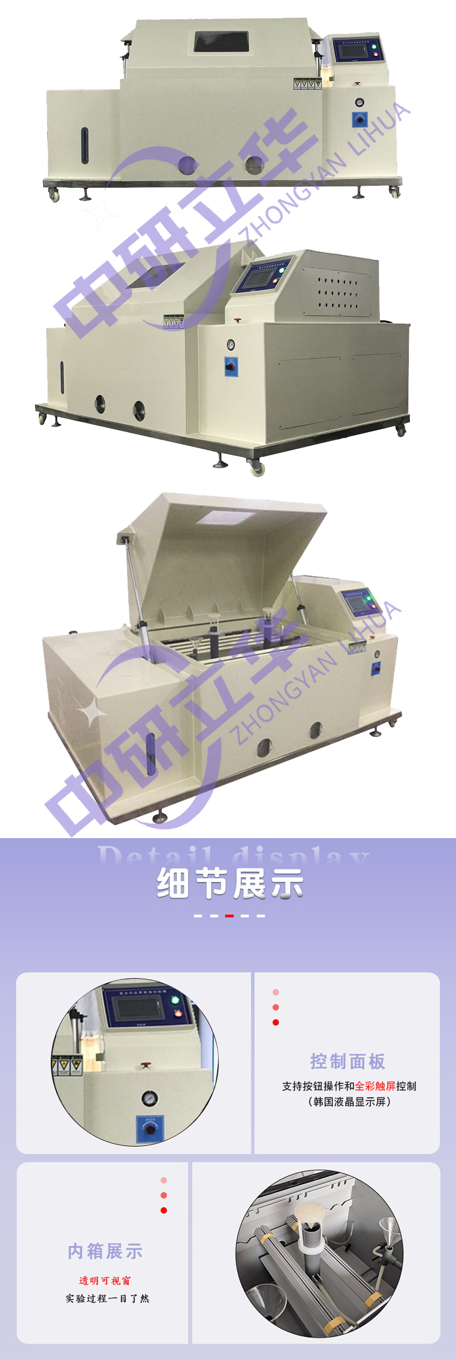 介紹:溫濕度鹽霧復合試驗機是為加速腐蝕試驗中 接近實際的自然狀況,以自然環境中較常遇見之狀況加以模擬,以數倍於自然 環境之嚴苛條件加以組合測試,如鹽霧、乾燥、濕潤、常溫、低溫等環